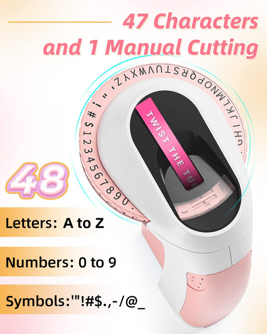 Memoqueen Embossing Label Maker Machine with 6 Tapes, Manual Embossed Label Makers, Portable Vintage Label Maker 3D Plastic Label Embosser, Use for Office Home Organization and DIY- E975 Pink