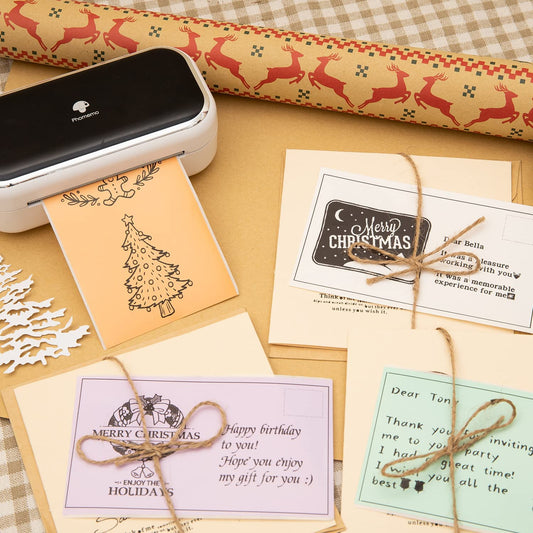 Memoqueen Mini Thermal Printer M04AS Portable Sticker Printer Wireless Bluetooth Printer for iPhone, Support 15/53/80/110mm Paper, Compatible with iOS & Android, Great for Memo, Notes, Photo, Journal