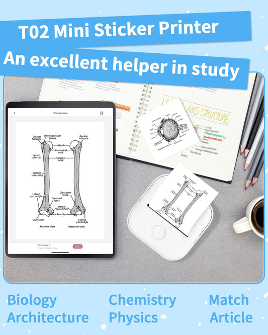 Memoqueen Mini Pocket Printer T02 Sticker Printer-Bluetooth Thermal Photo Printer Mini Portable Pocket Printer, Great for DIY Journal, Memo, Sticker and Notes, Compatible with iOS & Android, White