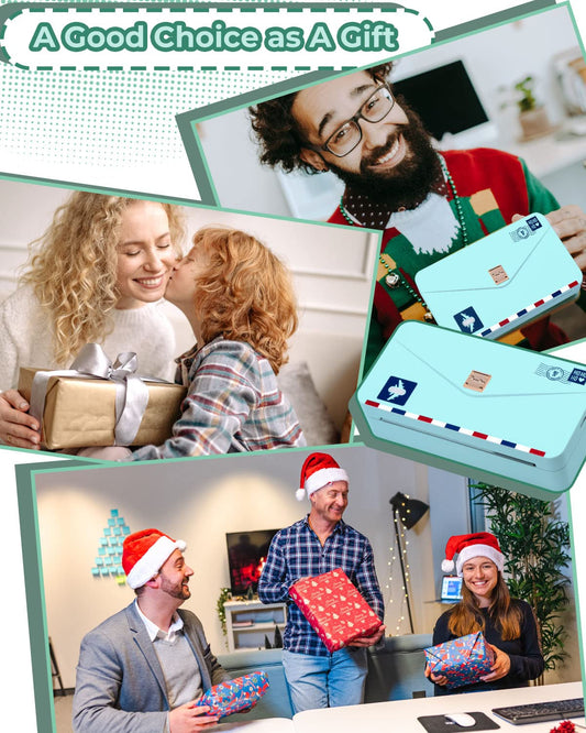 Memoqueen T02 Mini Sticker Pinter - Thermal Pocket Printer Wireless Bluetooth Thermal Printer Mini Photo Printer, Support for Android & iOS System, Great for Study, Work, Plan, DIY Journal, Green