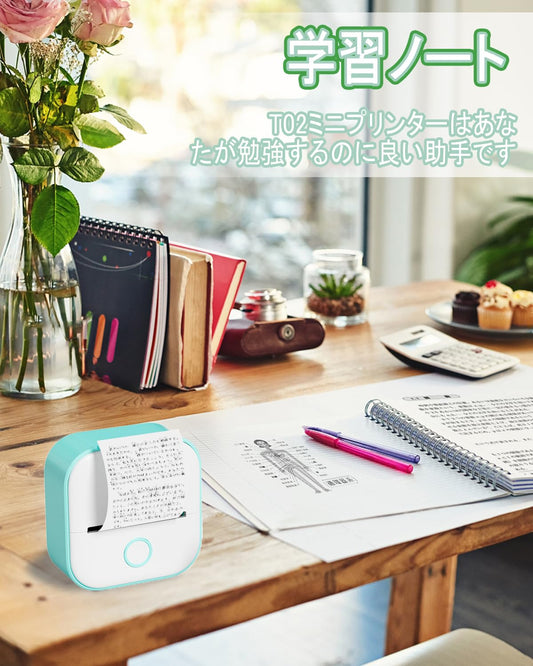 Memoqueen T02 ミニプリンター ポケットプリンター モバイルプリンター サーマルプリンター ミニプリンター スマホ対応 インクレスミニプリンター ワイヤレスBluetooth接続 写真/ショッピングリスト/作業計画/学習ノート/メモ,日記/手帳作成などに使用可能で,本体には感熱紙3巻付