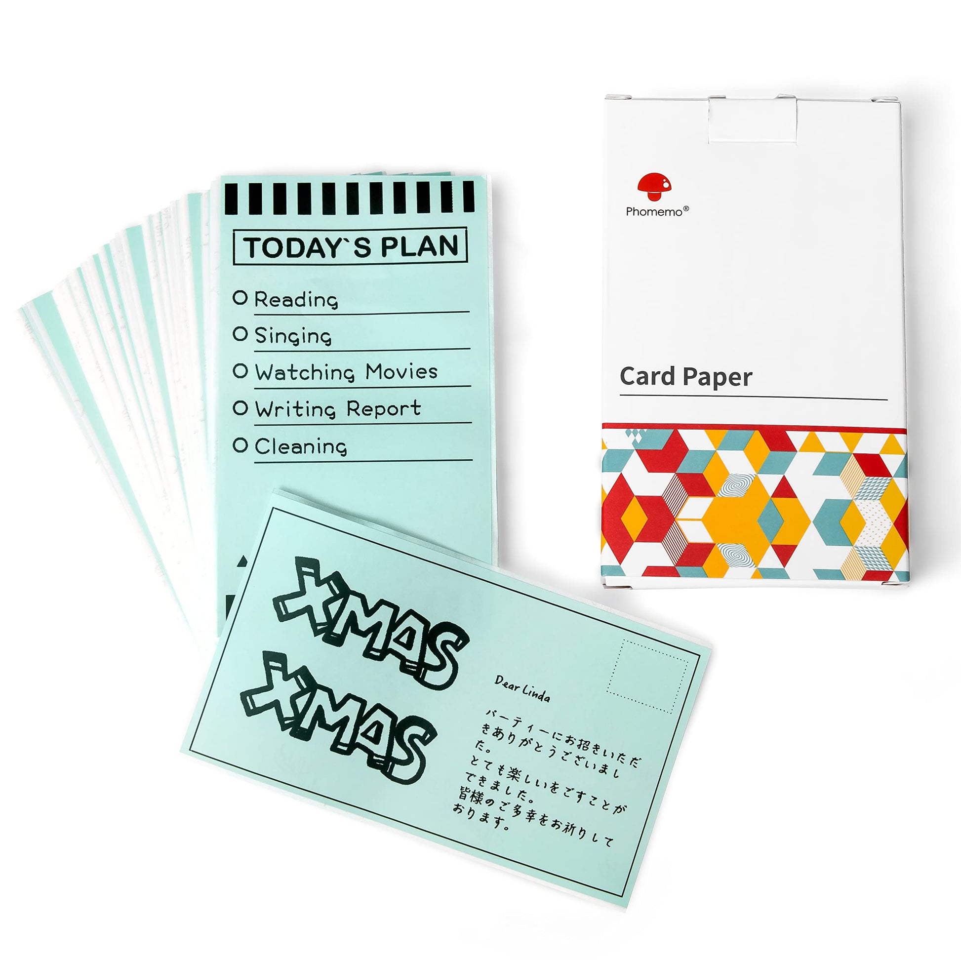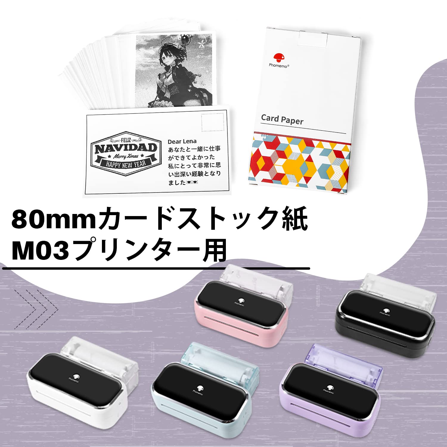 - 印刷可能なカードストックペーパー-「Phomemo」アプリを使用してM03 ミニプリンタを接続し,「カードペーパー」機能を選択すると,テンプレートを使用して,コンテンツ,写真,ポストカード,メモ,To Doリスト,ステッカーなどを編集することができます.