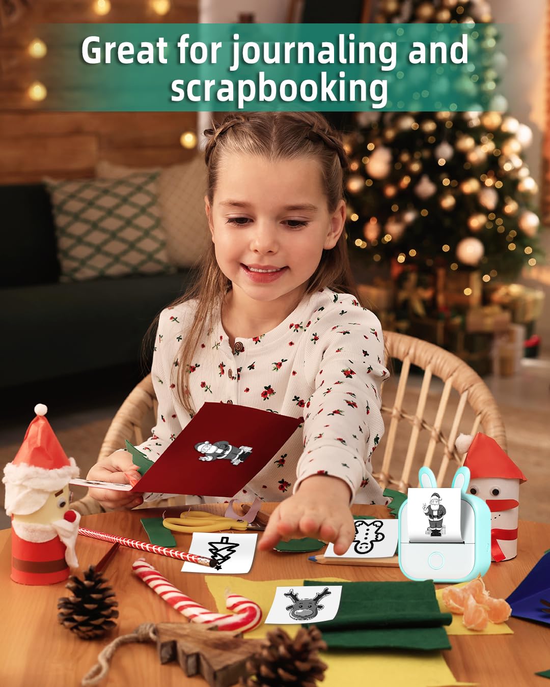 - Save Time and Money: T02 mini thermal photo printer features a high quality inkless thermal print head for clear, smooth, fast printing and no ink or toner required; reliable 203 dpi print quality for black and white images and text for a wide range of stickers, labels, general photos, scrapbooking, memo printing, and Compatible with different types of thermal paper, self-adhesive thermal paper, patterned thermal paper, etc