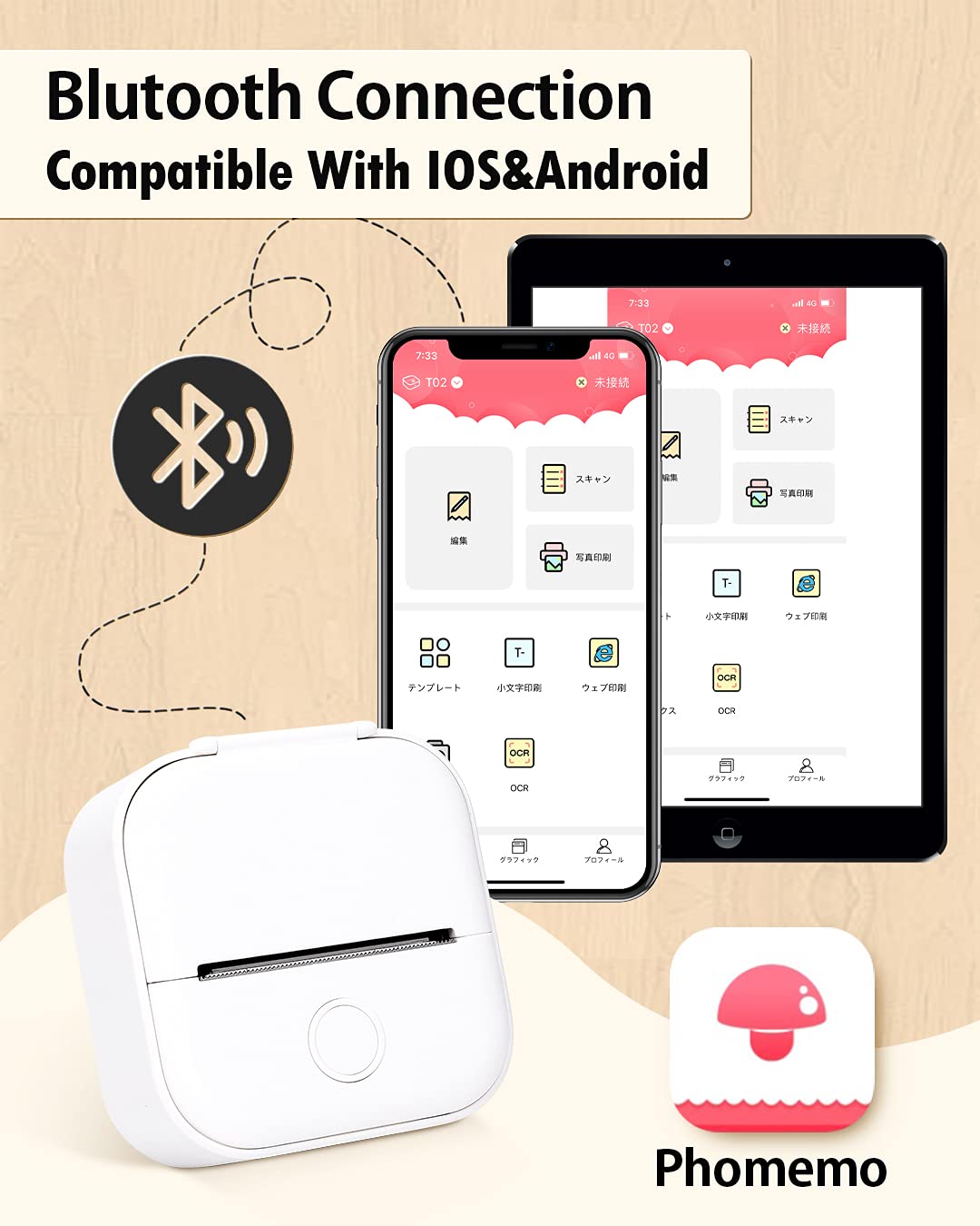 - Easy to Use: Enjoy printing of T02 portable phone printer in just 3 steps. Step 1: Place the paper roll in your device. Step 2: Download the Phomemo app and connect your phone to the sticker printer. Step 3: Edit your content in the app and print it out