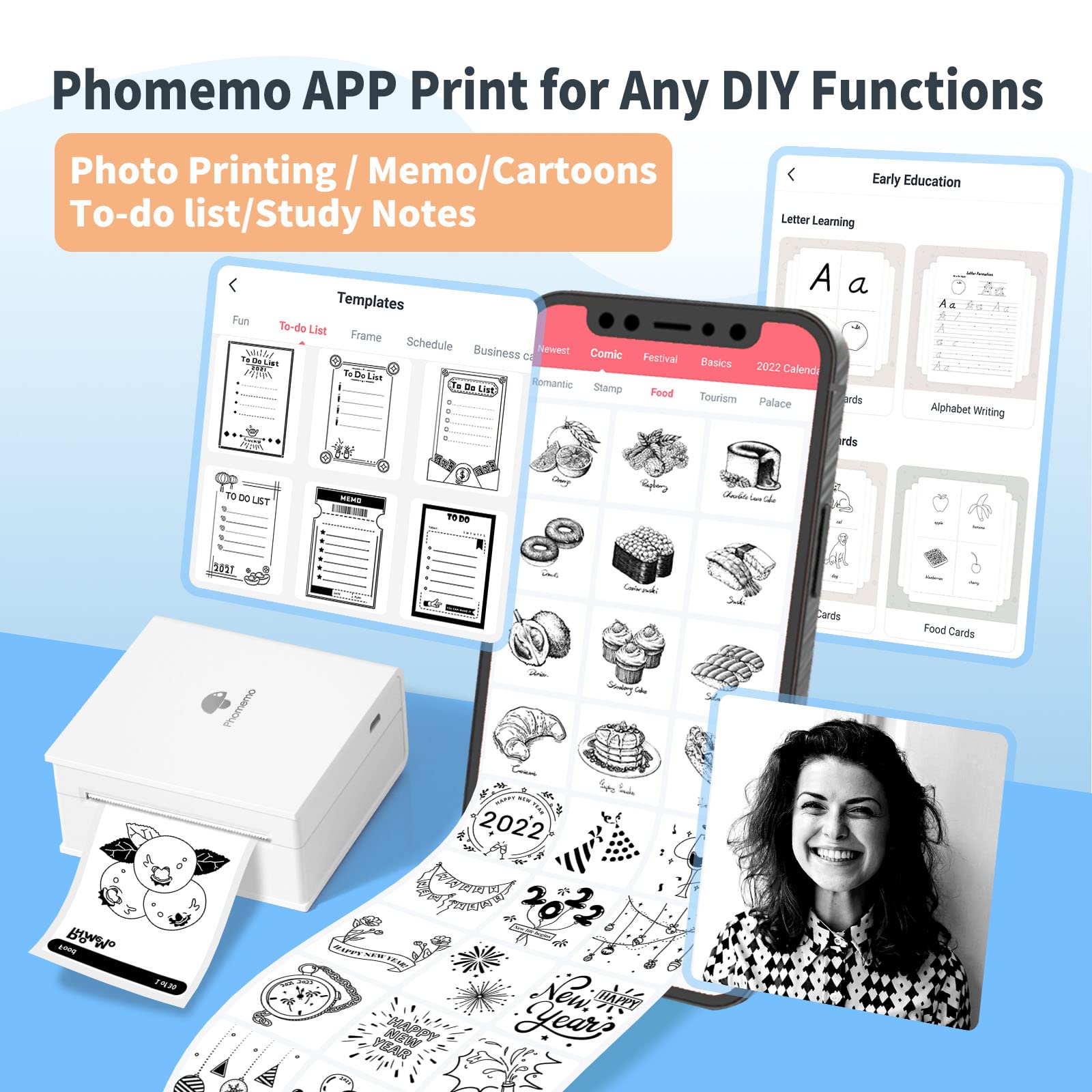 - Funny Printer - It's ideal for Halloween, Thanksgiving Day, Christmas, and holiday present to child, family, and friends. M02S portable mobile printer is better for company business, work plan, office assistant, meeting notes, study notes, shopping list. Suitable for office, students, amateur archivists, treasure moms, etc.