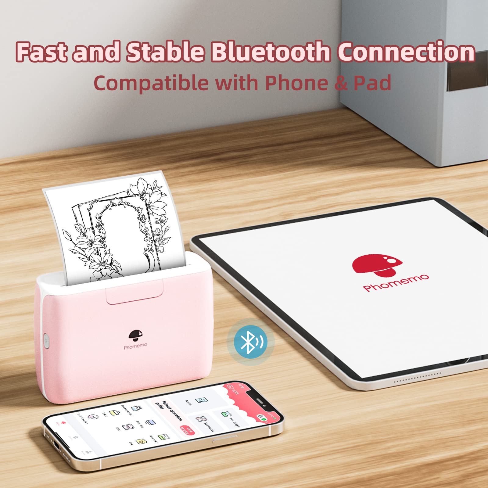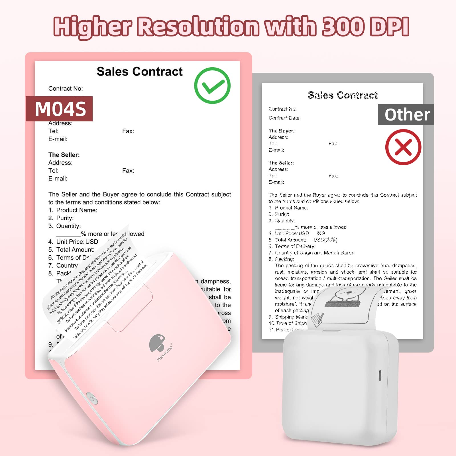Phomemo M04S Portable Printer - Bluetooth Inkless Thermal Sticker Printer Compatible with iOS and Android for Instantly Print Documents, Notes, Laebl with 300dpi, Support 53/80/110mm Paper Width, Pink