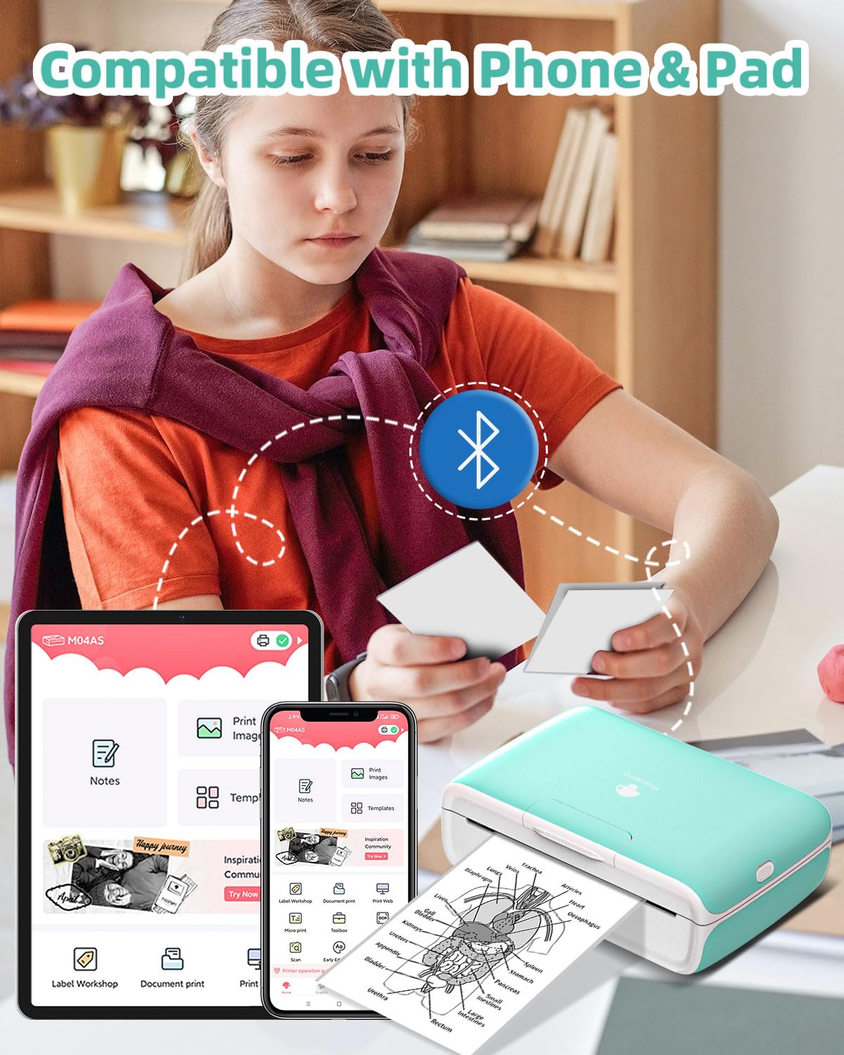 - Wireless Bluetooth Printer: Create your need stickers and photos without the hassle of wires, anytime, anywhere with stable Bluetooth connection. No ink or cartridge required, M04S inkless stciker printer comes with a roll of 110mm thermal paper to print what you need