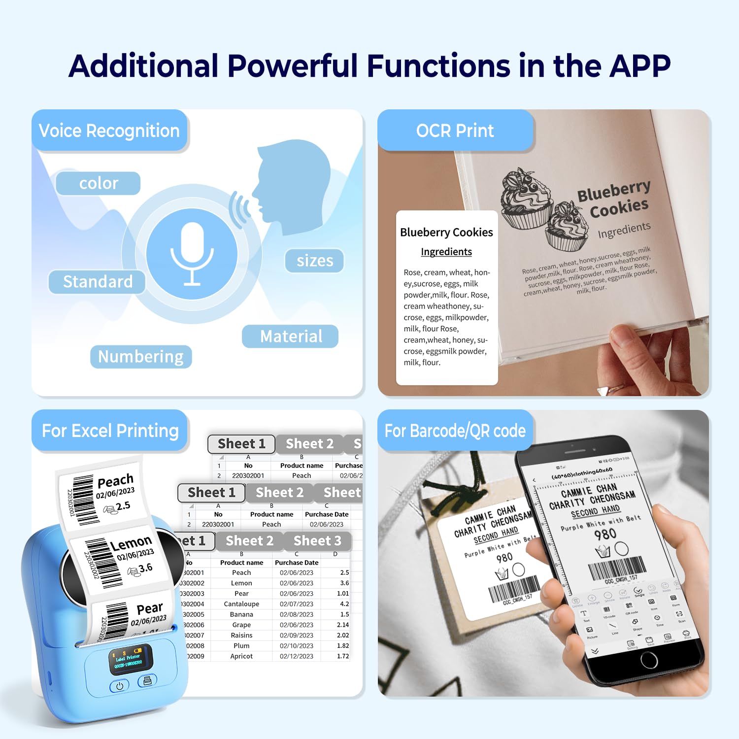 - Portable and New Technology: Download the ''Print Master'' app and connect flawlessly to this label maker via Bluetooth. One-click printing, saving time, and effort. All label templates and can set up your own templates in app. You can edit and typeset labels, supporting Excel batch printing to improve work efficiency